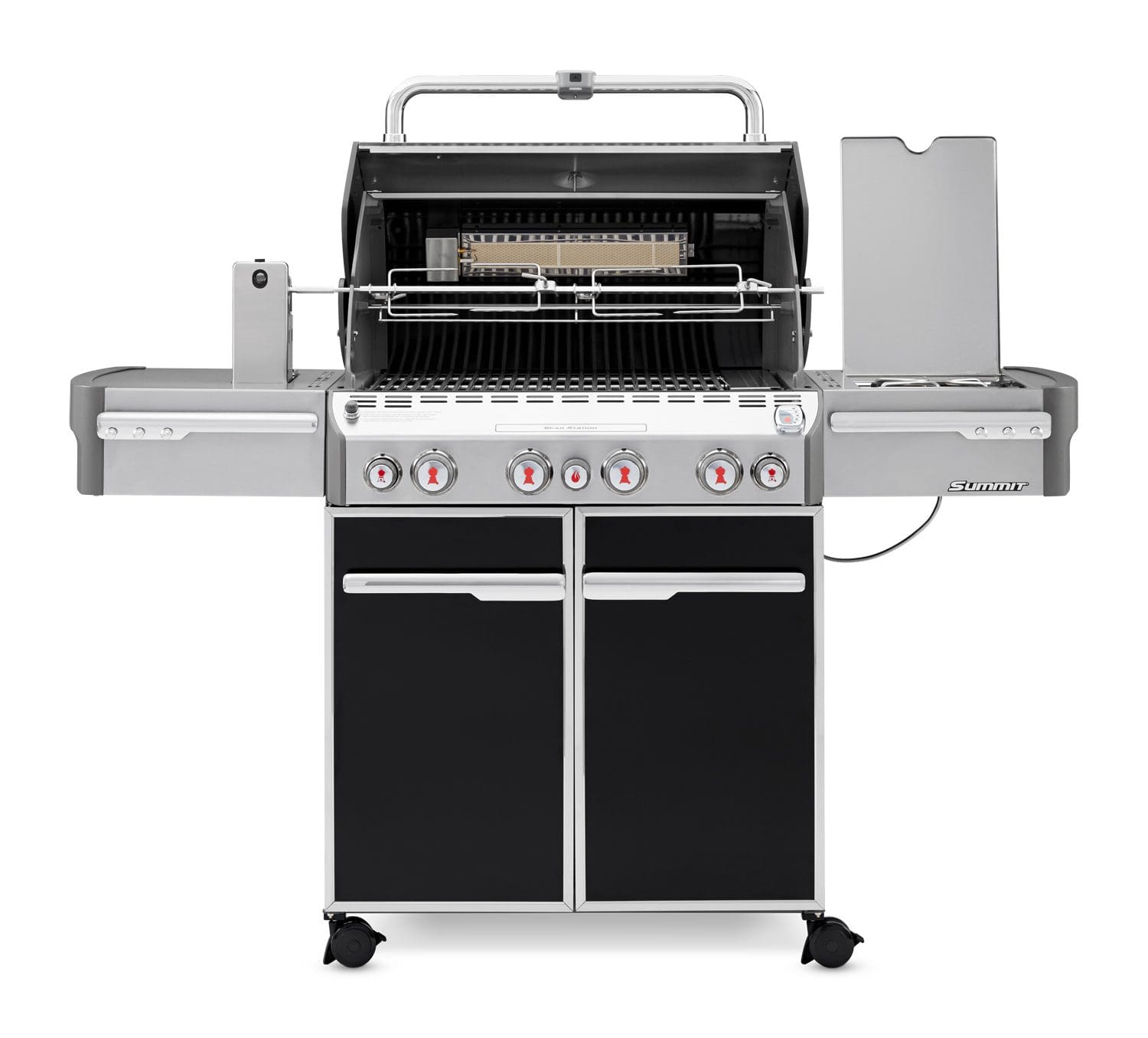 Weber’s complete cooking system, the Summit gas grill series offers heavy duty construction and flexible cooking options at an affordable price. With an included rotisserie, smoker box , sear zone, and side burner, you can accommodate any cooking style or flavor preference in one space! Four main burners give you enough space to cook for your family on a weeknight, or entertain over the weekend. The Summit 470 is available in black enamel or stainless steel finishes. Contact us for more information on available natural gas and propane models today!